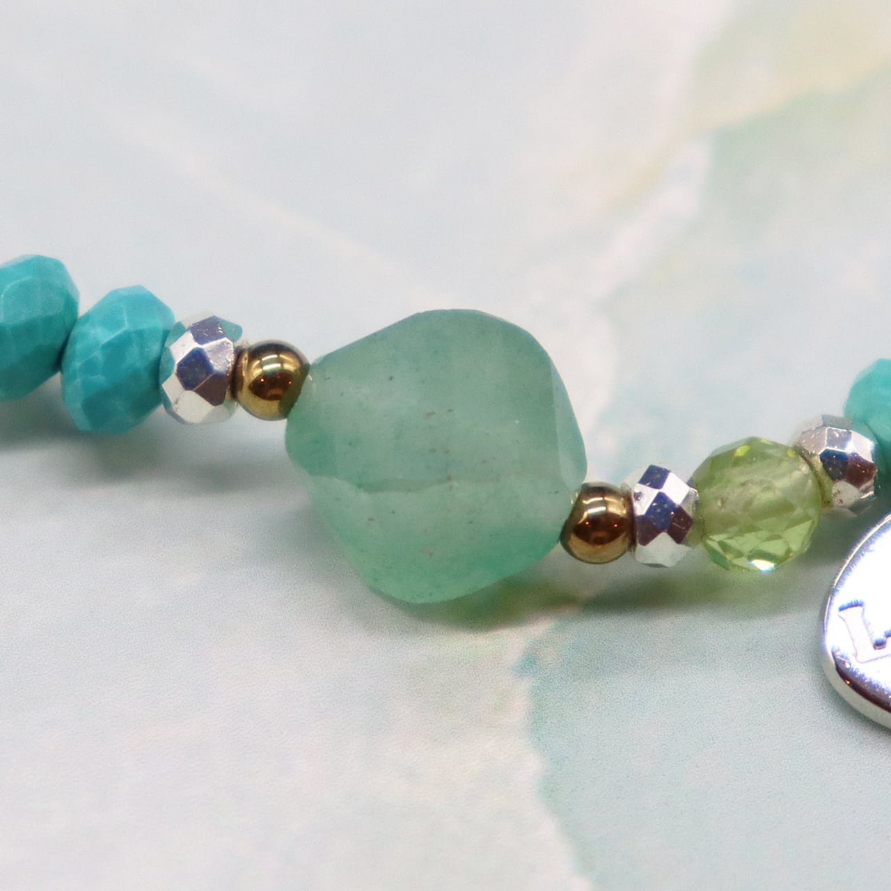 マグネサイトを染色によりターコイズに見立てた、ターコイズの代用品として人気の高い石です。マグネサイトは心身の循環サイクルをサポートし、順応力・前向きな力を高めてくれる石と言われています。
