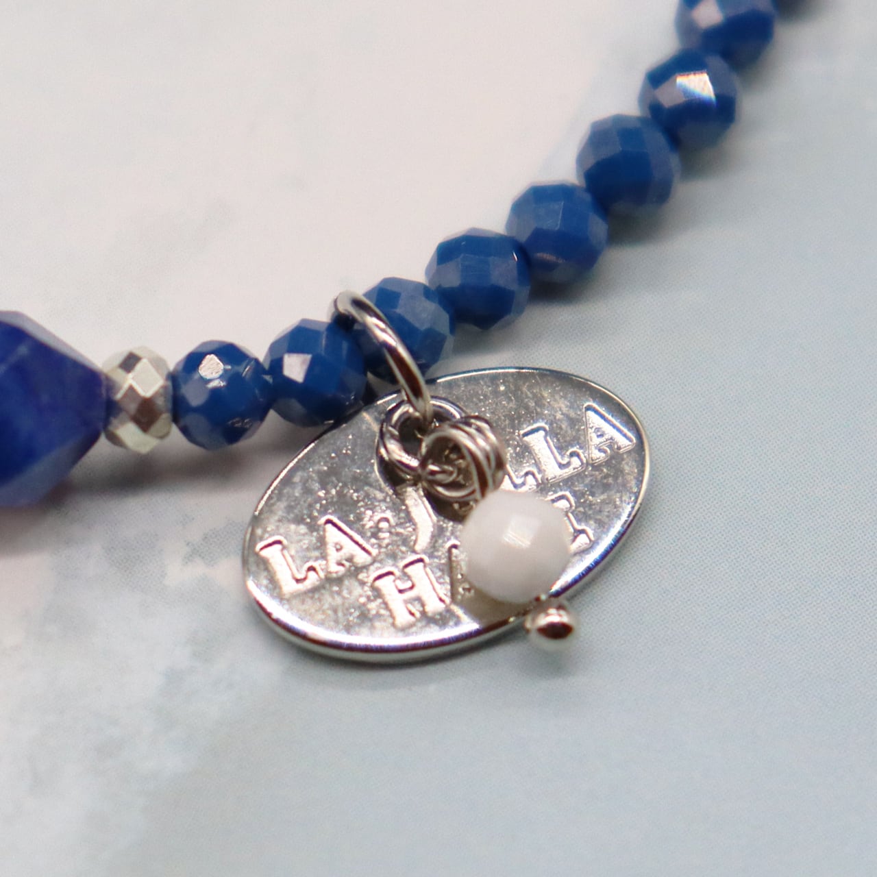 9月誕生石。深く鮮やかな群青に、金色が星の様に散りばめられた夜空を思わせる神秘的な宝石「ラピスラズリ」は、幸運を呼ぶ石として知られています。古来より美しさと力を兼ね備えた石として愛され続けるラピスラズリは、世界で最も古いパワーストーンのひとつと言われています。深い青を「夜空」金色を「星」として 、天空のように青く美しい特徴的な姿から、「天空を象徴する聖なる石」として人々を魅了してきました。また、古代エジプトでは黄金に匹敵する価値のある、最高の力を秘めた護符として、王族の装飾品としても用いられていました。ラピスラズリは、持つ人の潜在的な問題を顕在化させ、その問題を解決する事から本質的に幸せに導くと言われています。また、人生において自分が進むべき本道に気づかせてくれる、カリスマ性を高める力を持つと言われています。