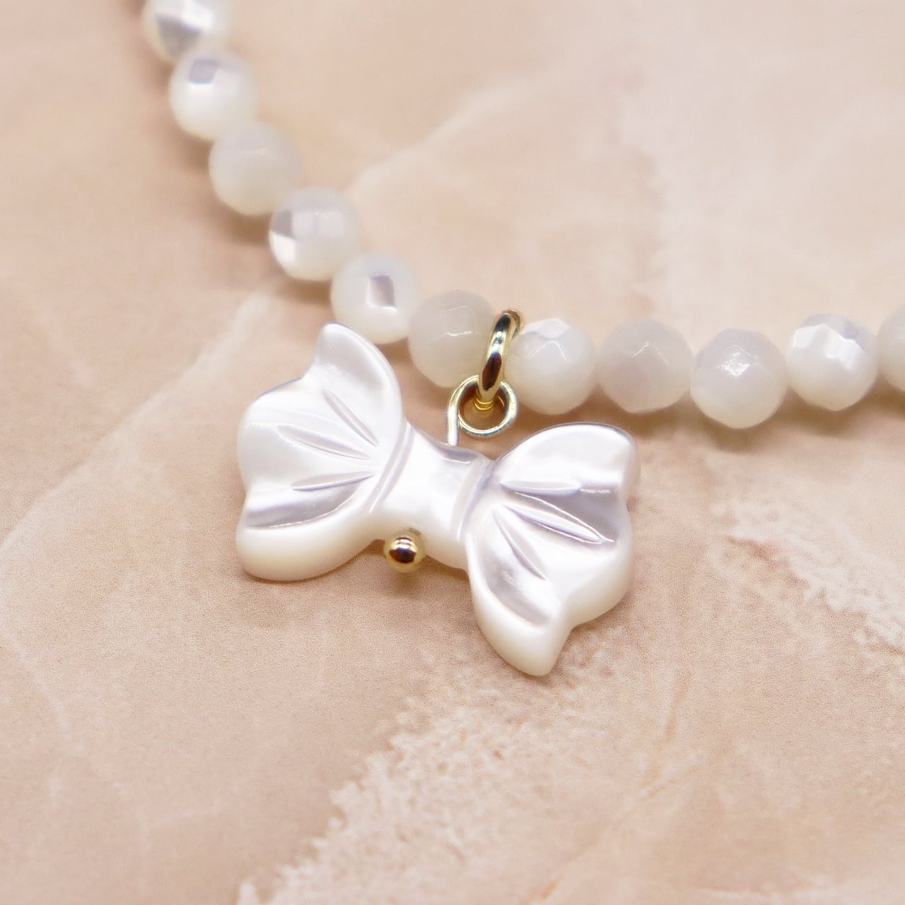 真珠を生み出す母貝の貝殻から作られるマザーオブパールは、母性や親子愛を象徴する石と言われています。また、女性の魅力を高め、愛され力をアップさせる力を持つと言われています。