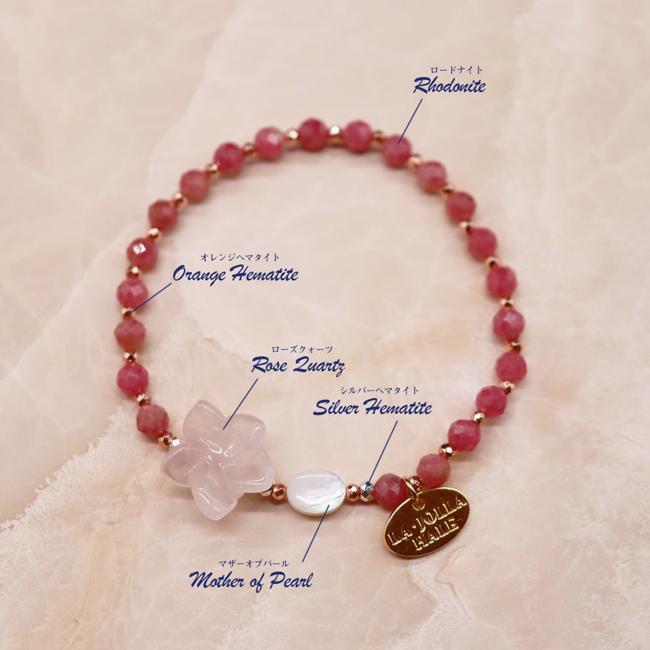 愛と美の女神「アフロディーテ」の石といわれる10月誕生石「ローズクォーツ」。神々は彼女の美しさを讃えるために、この世で最も美しい花「薔薇」を新たに創造しました。彼女が歩いた後の足元には薔薇の花が咲き乱れ、その薔薇が結晶化したものがローズクォーツだと云われています。咲き乱れるピンクの薔薇「ローズクォーツ」でデザインした【 Blooming Pink Roses】コレクション。