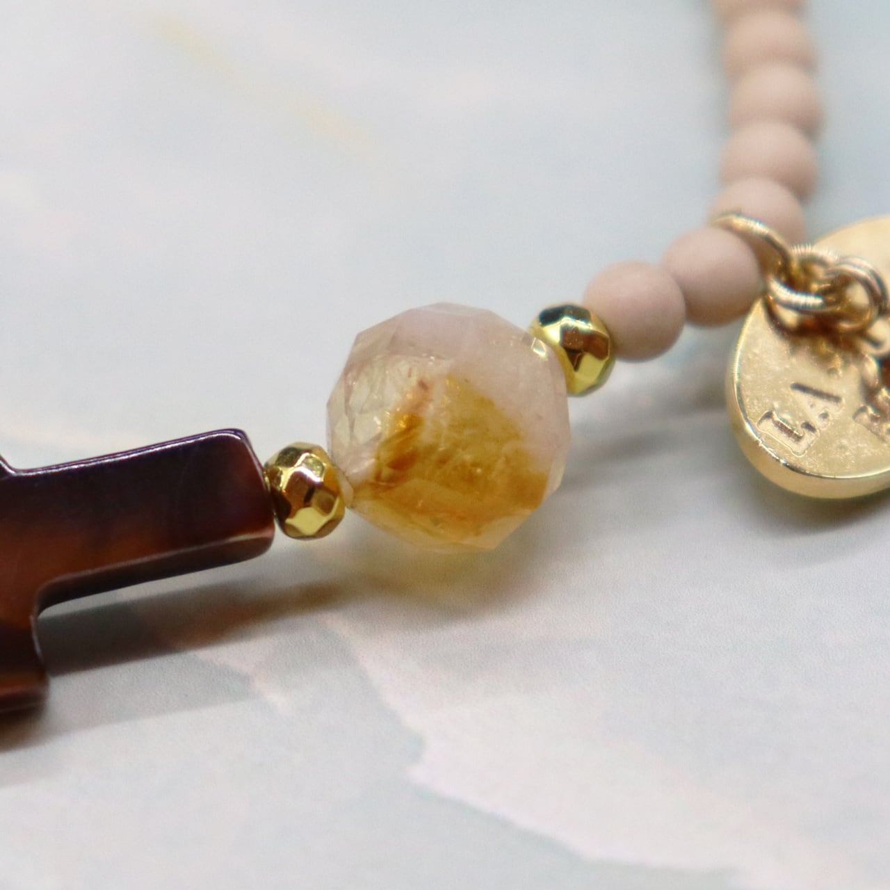 真珠を生み出す母貝の貝殻から作られるマザーオブパールは、母性や親子愛を象徴する石と言われています。また、女性の魅力を高め、愛され力をアップさせる力を持つと言われています。