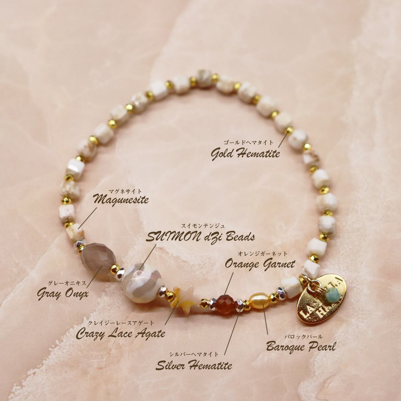 マグネサイトは心身の循環サイクルをサポートし、順応力・前向きな力を高めてくれる石と言われています。