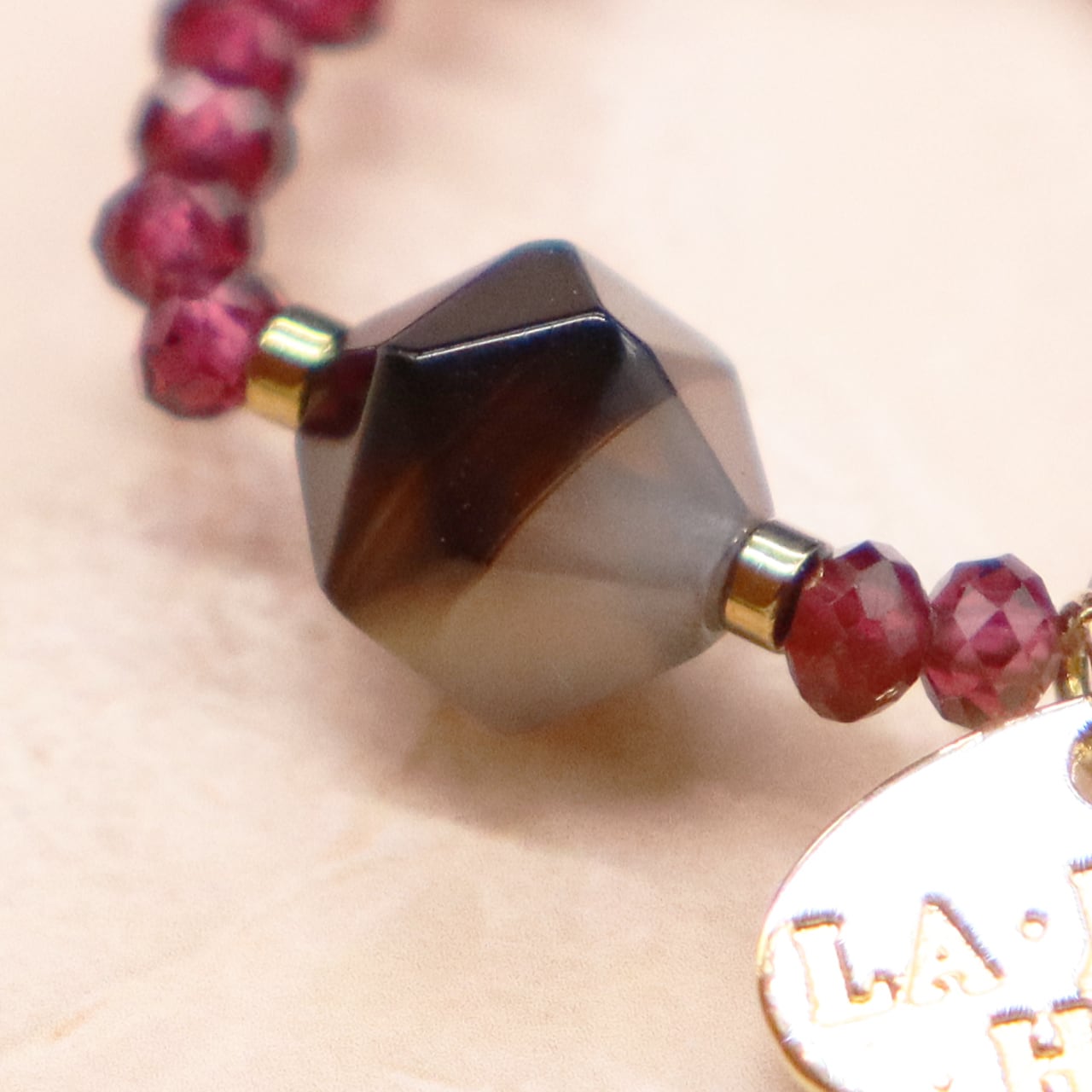 1月誕生石。深く澄んだ赤が印象的な、モザンピーク産のガーネット。発色と透明感に優れています。古くから「努力を実らせる石」「絆を深める石」として扱われ、情熱や生命力を高めながら、地に足のついた前向きな行動をサポートすると言われています。
