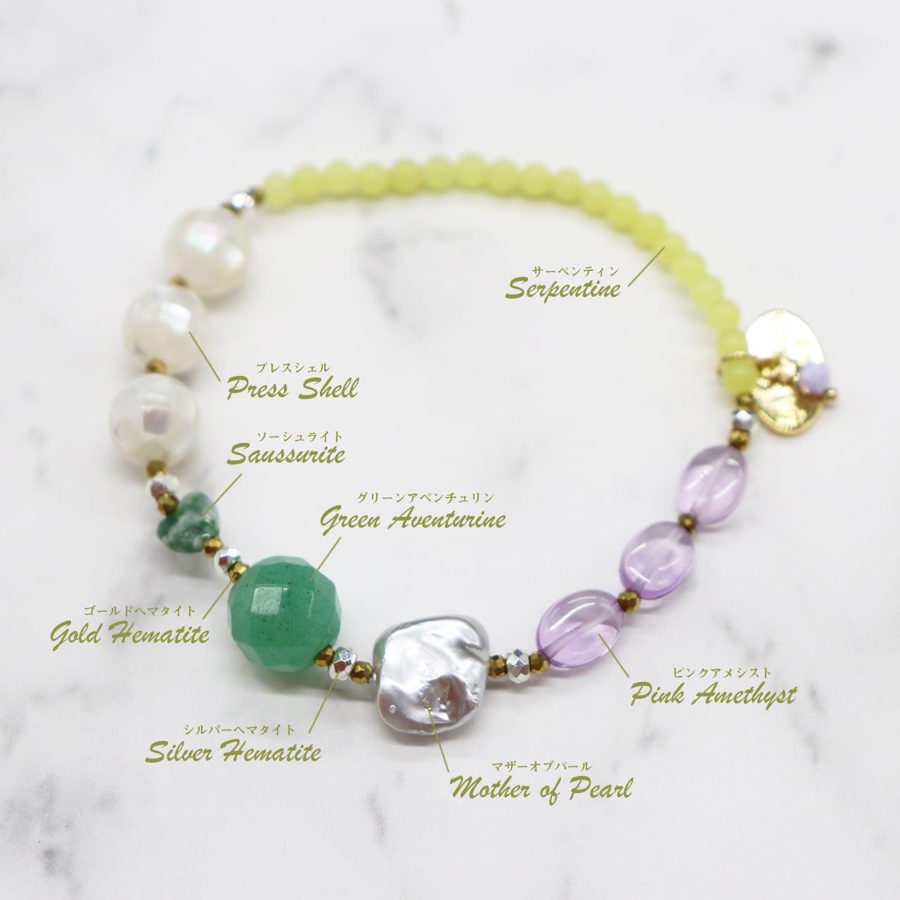 ・ご希望のサイズに合わせサイズ調整を致しますが、使用している天然石のサイズ・ブレスレットのデザインによって若干のサイズ誤差が生じます。予めご了承ください。