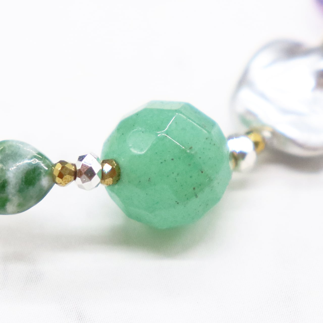 5月誕生石。主産地がインドで翡翠に似ているため、インド翡翠とも呼ばれています。心身に溜まったエネルギー的な汚れを綺麗に洗い流してくれる様な癒しの石と言われています。