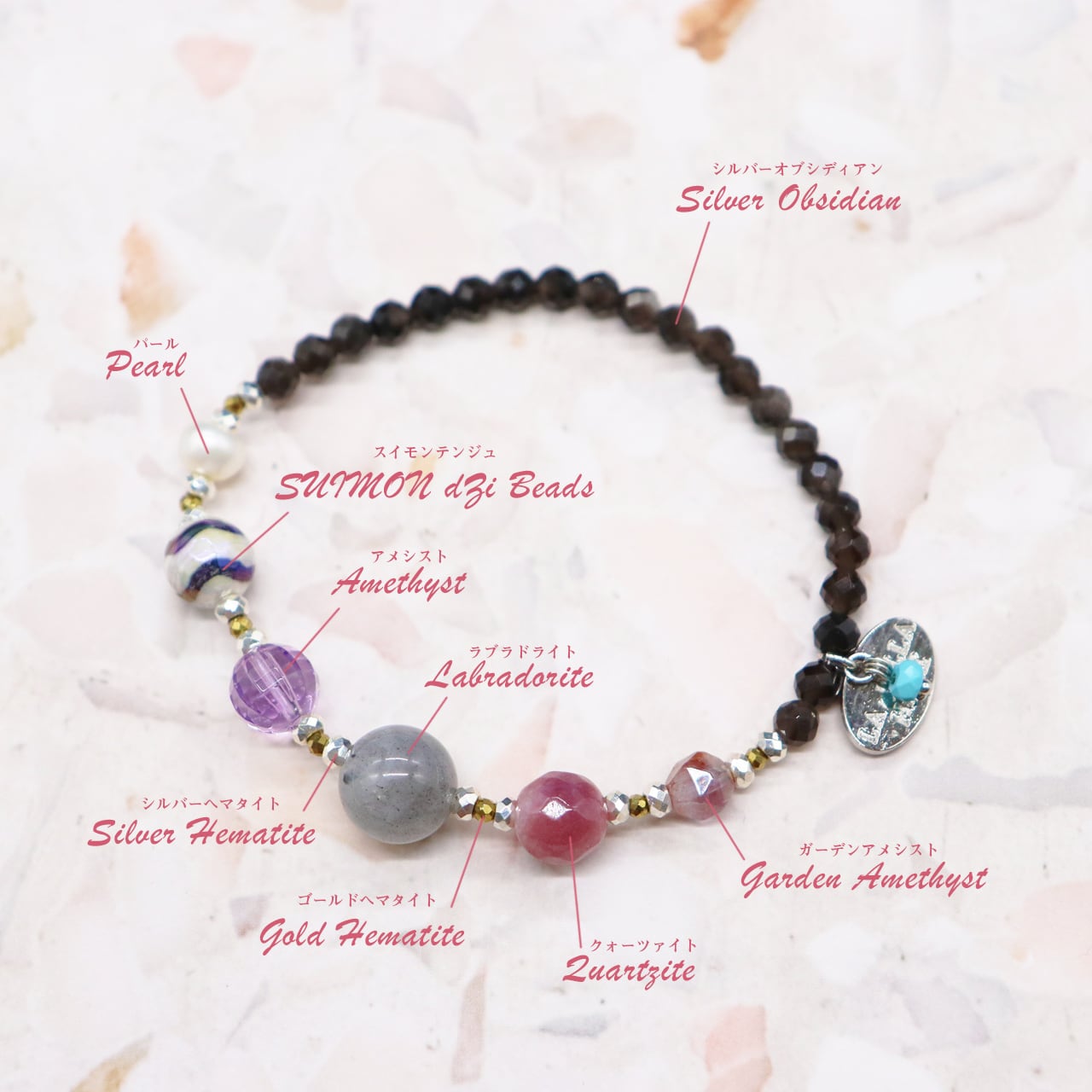 ・ご希望のサイズに合わせサイズ調整を致しますが、使用している天然石のサイズ・ブレスレットのデザインによって若干のサイズ誤差が生じます。予めご了承ください。
