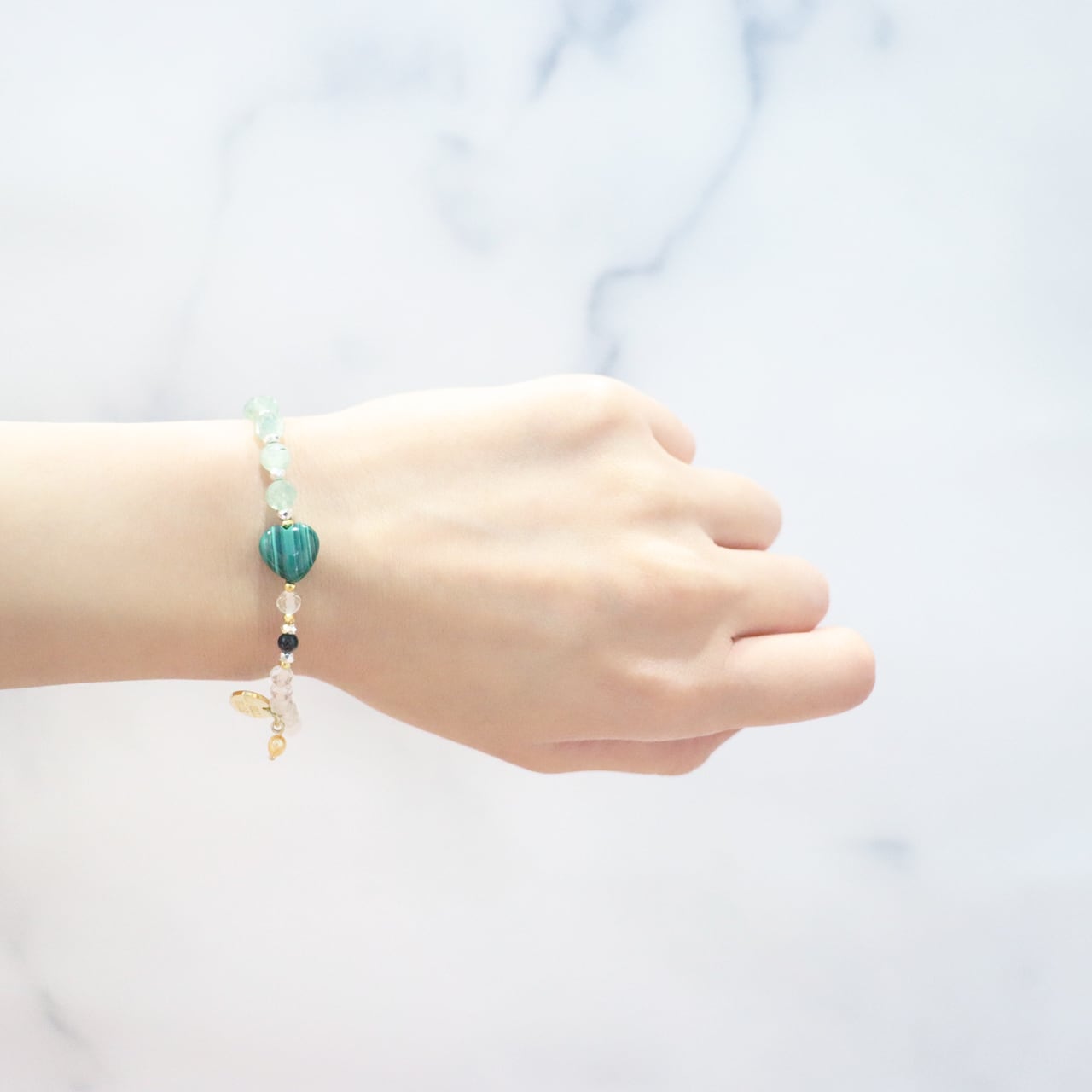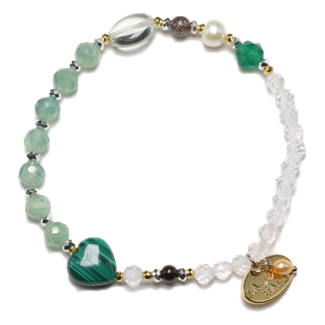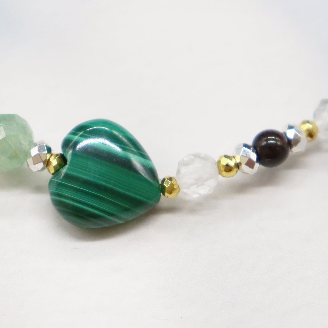 グリーンにマーブル模様が入ったとても美しい石マラカイトは、模様が羽を広げた孔雀を思わせることから「孔雀石」とも呼ばれ、心と体のエネルギー的な毒素や淀みを綺麗に吸い出してくれると言われています。