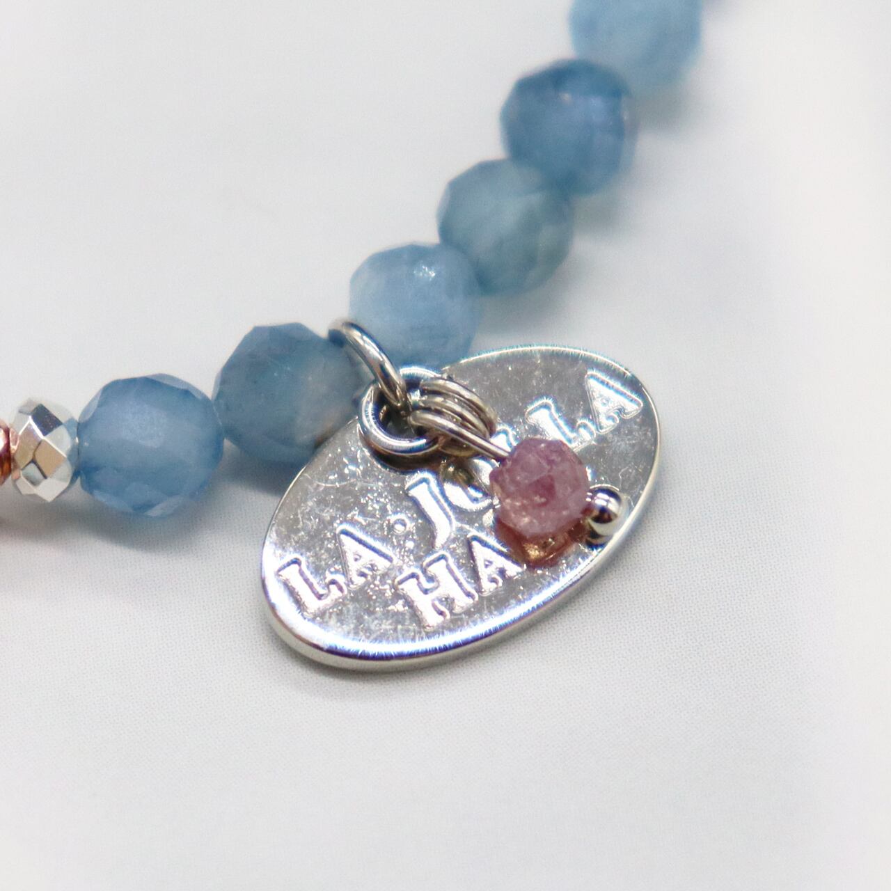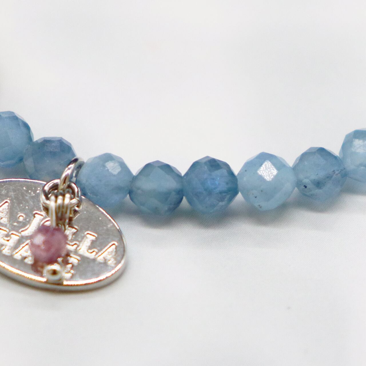 3月誕生石。「海の石」とも言われ、癒しの力で感情的なエネルギーの滞りなどを洗い流し、良質なコミュニケーションをとる為のサポートをし、海のような穏やかさと寛容さで包み込み深い愛情へ導くと言われています。また何事にもとらわれない水のような柔軟性をもたらすと言われています。アクアマリンの名称は、ラテン語で水の意味の「aqua」と海の意味の「marinus」に由来し、神話では「美しい海底に住む妖精の宝石が、浜辺に打ち上げられた」とされ、古代より人々に愛され、崇められてきた強力な守護石としても伝えられています。