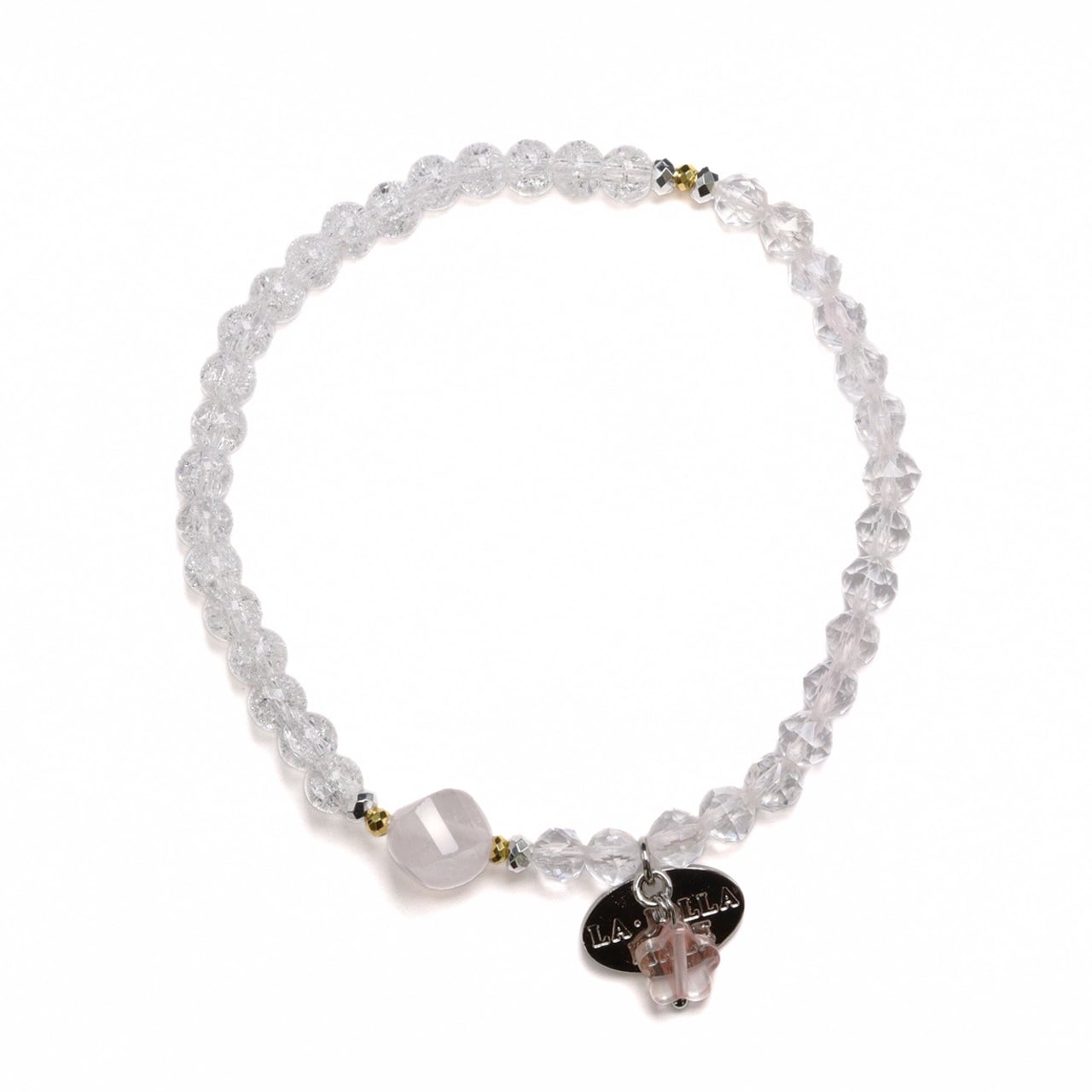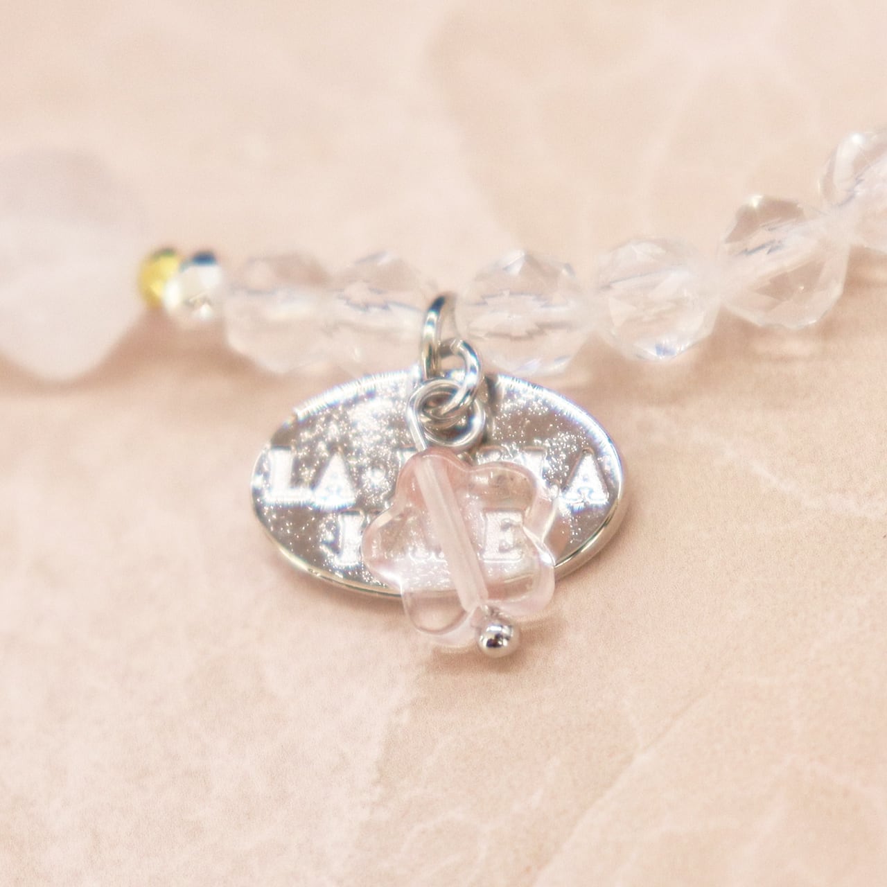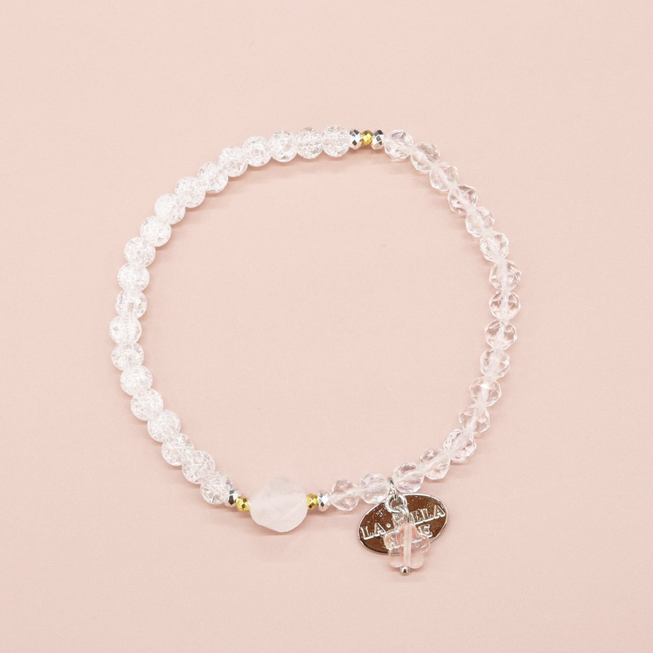 4月誕生石「水晶」に人工的な処理を施し、クラックを入れたものです。クラック(割れ)がネガティブな気を吸収して災厄を退け、持ち主に幸運をもたらすと言われています。
