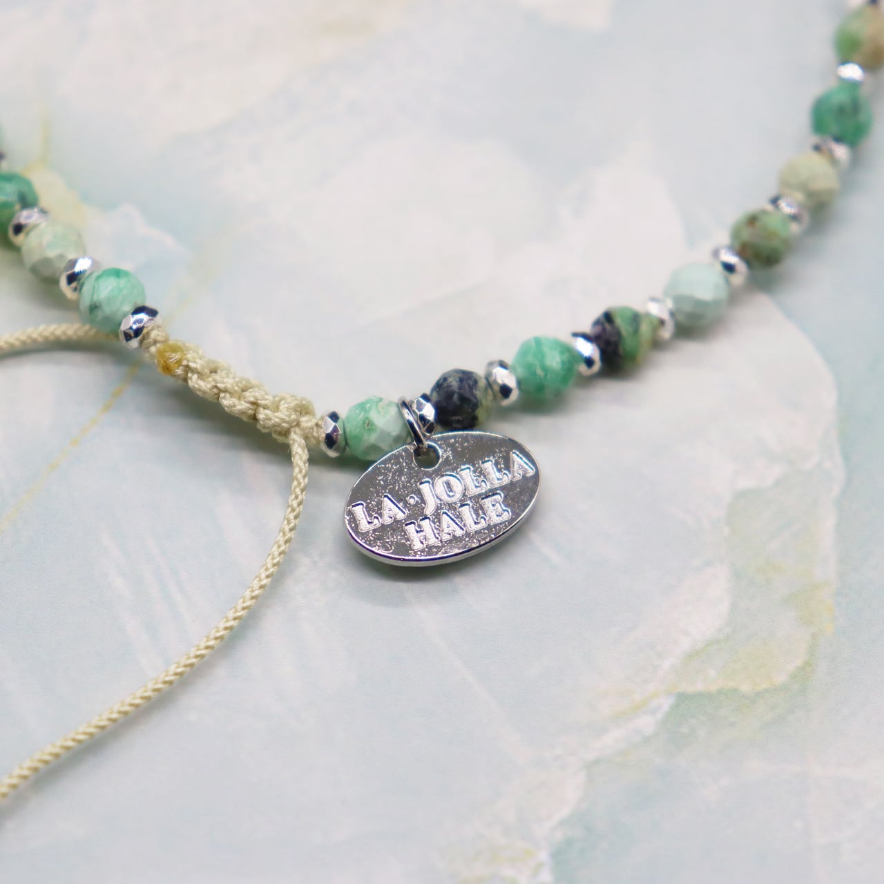 ブルーアベンチュリン / バリサイト / シルバーヘマタイト / シルバーロゴプレート(18WGコーティング)